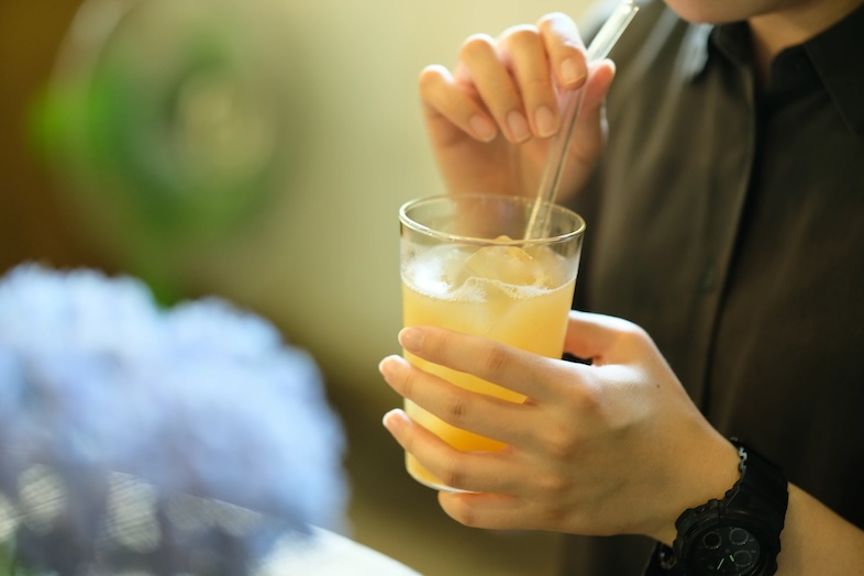 汗をかいた後はアイスコーヒーや地元産のリンゴジュースなど、 爽やかなドリンクでリフレッシュ。