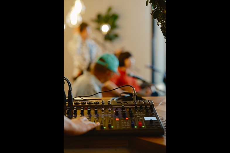 2面採光の明るい空間は撮影や配信にも適しており、トークイベントやワークショップ、オフサイトミーティングの場としても活用されています。音響設備や楽器演奏にも対応し、控室も完備。